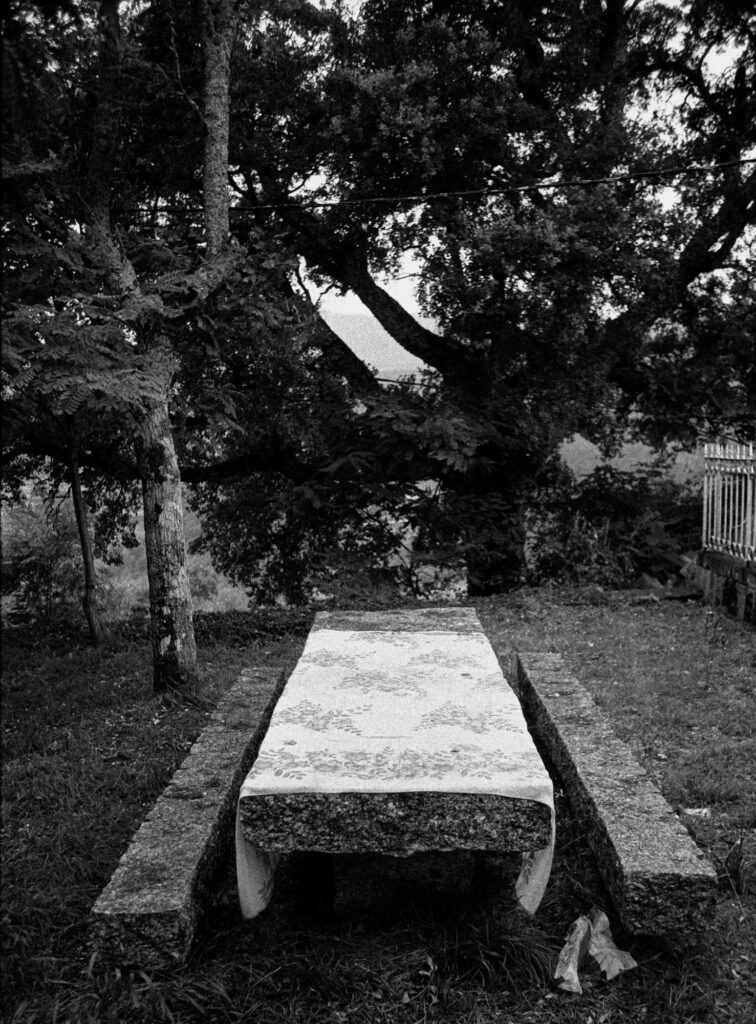 Sus imágenes funerarias no son solo descriptivas. Contienen detalles poéticos, a veces humorísticos, que enfrentan lo mortuorio a la vida —un nicho vacío que sirve de fresquera a la bota de vino del enterrador, una margarita ajada en un osario sin nombre y más detalles que hay que descubrir, pues cada foto fue detenidamente escogida por él para completar la serie.