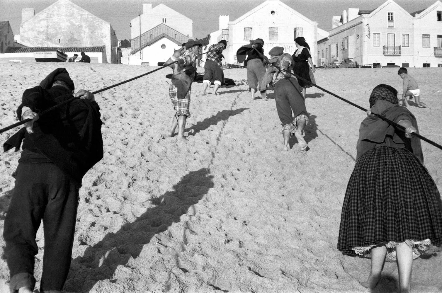 En Nazaré, pequeño pueblo pesquero al norte de Lisboa hoy famoso para los surfistas por sus olas gigantescas, Ricard Terré encontró en 1964 no surfistas ni bañistas, sino mujeres que aguardaban la llegada de las barcas donde sus hombres se habían hecho a la mar. No son viudas, o no saben aún si lo son. De espaldas al mar, anticipan el velorio, como en la serie de Santa Marta, representando un rito previo al milagro. Visten de negro para no improvisar el luto. Hay en ellas algo atávico, heredado de madres y abuelas que también esperaron quizá ya como viudas.